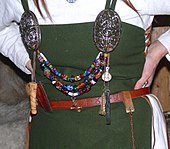 Typical jewellery worn by women of the Karls and Jarls: ornamented silver brooches, coloured glass-beads and amulets (source : Wikipedia)