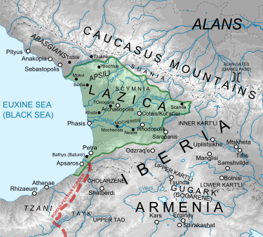 Lazica, situated on the eastern shore of the Black Sea, and controlling important mountain passes across the Caucasus and to the Caspian Sea, had a key strategic importance for both empires. For Byzantines, it was a barrier against a Persian advance through Iberia to the coasts of the Black Sea. Persians on the other side hoped to gain access to the sea, and control a territory from which Iberia, which was by now under their firm domination, could be threatened." (source : Wikipedia)