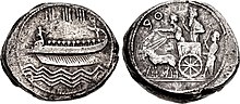 The Phoenicians also continued to maintain cultural and commercial links with their western counterparts. Polybius recounts how the Seleucid king Demetrius I escaped from Rome by boarding a Carthaginian ship that was delivering goods to Tyre.[79] An inscription in Malta, made between the second and third centuries BCE, was dedicated to Herakles/Melqart in both Phoenician and Greek. To the extent the Phoenicians were subject to some degree of Hellenization, "there was much continuity with their Phoenician past—in language and perhaps in institutions; certainly in their cults; probably in some sort of literary tradition; perhaps in the preservation of archives; and certainly in a continuous historical consciousness."[80] There is even evidence that a Hellenistic-Phoenician culture spread inland to Syria.[81] The adaptation to Macedonian rule was likely aided by the Phoenician's historical ties with the Greeks, with whom they shared some mythological stories and figures; the two peoples were even sometimes considered "relatives".[82]