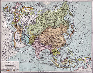 It was introduced into mainstream by the British novelist Rudyard Kipling in his novel Kim (1901).[15] It was first used academically by Professor H.W.C. Davis in a presentation titled The Great Game in Asia (1800-1844) on 10 November 1926.[16] The use of the term "The Great Game" to describe Anglo-Russian rivalry in Central Asia became common only after the Second World War.