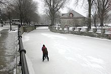 Two people skate on the frozen canal. (January 2011).