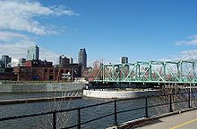 A bridge over the Lachine Canal, in sight of downtown Montreal