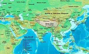 Asia in 400 AD, showing the Xionites ("Chionites") and their neighbors.