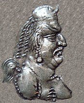 Mihirakula on one of his coins. He was finally defeated in 528 by King Yasodharman.