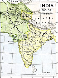 Alchon territories of Mihirakula, c. 500 CE (in green).